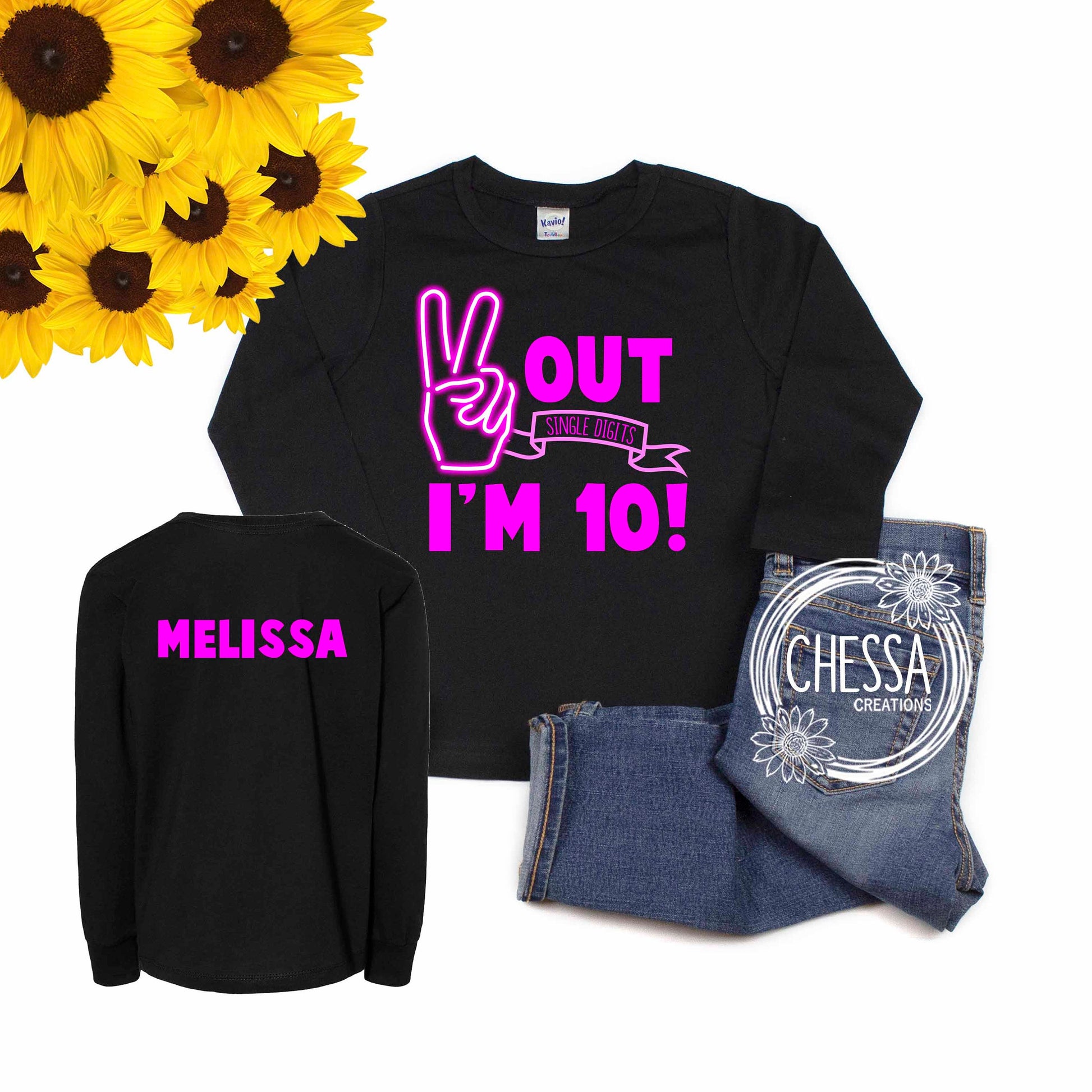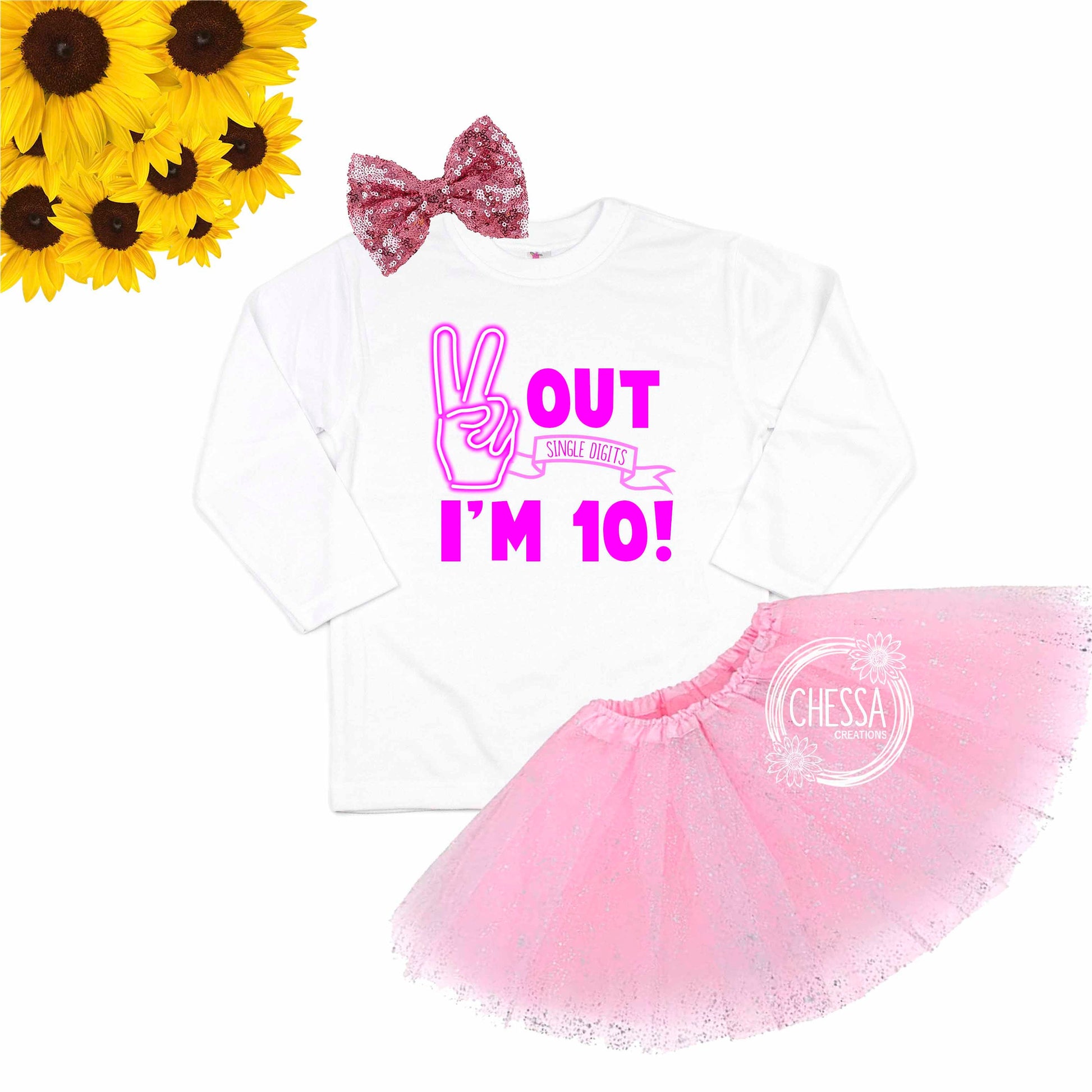 Make your little girl feel like a million bucks on her special day! You can’t go wrong with a personalized shirt, tutu and bow to make for a complete outfit! It will truly make the birthday girl feel special and loved. #BirthdayGirl #Neon #RetroBirthday #10thBirthday #DoubleDigits