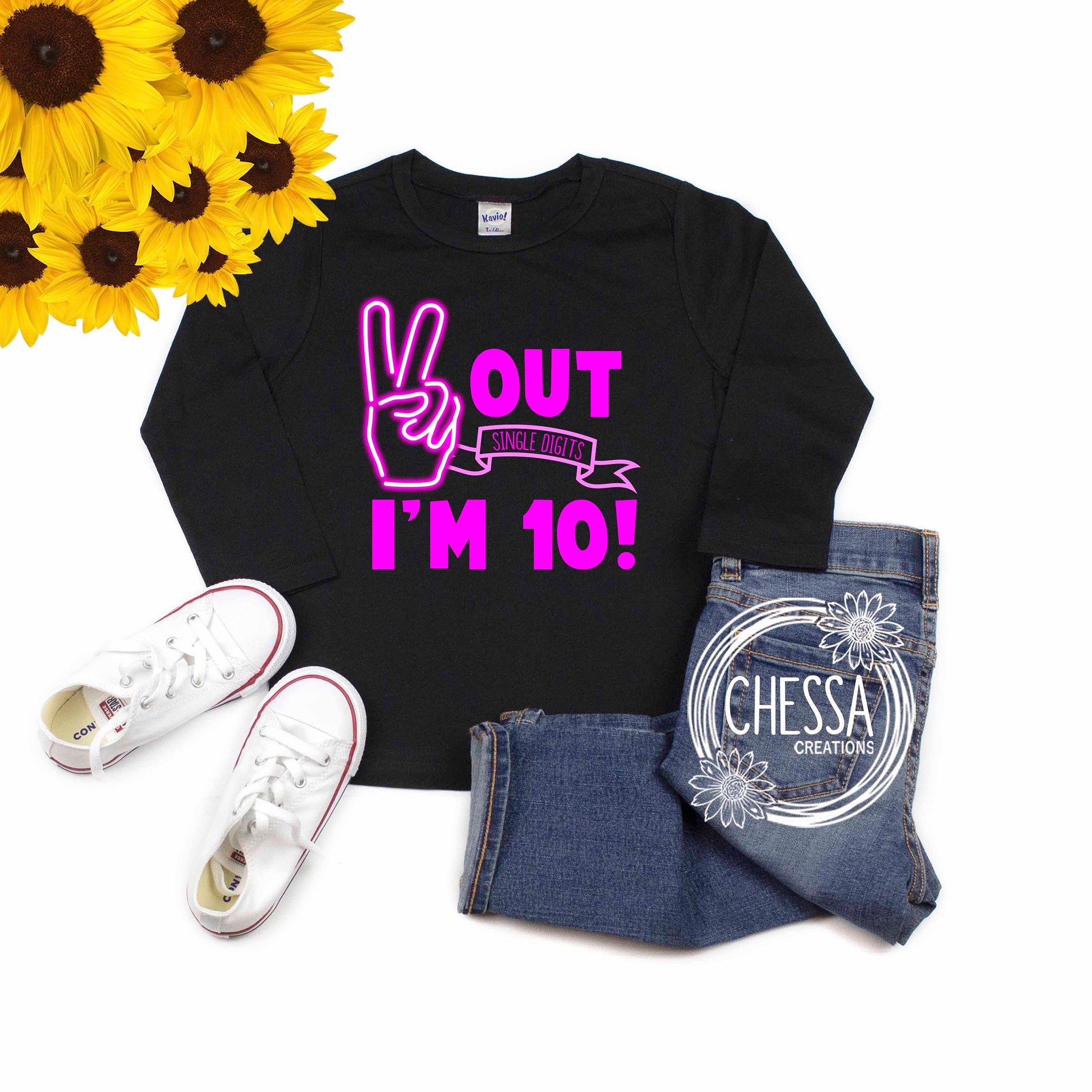 10th Birthday Girl Outfit Shirt for Girls 10th Birthday Long or Short Sleeve Shirt w/ Tutu & Bow, Neon Peace Out Single Digits I'm 10, Professional Ink Print