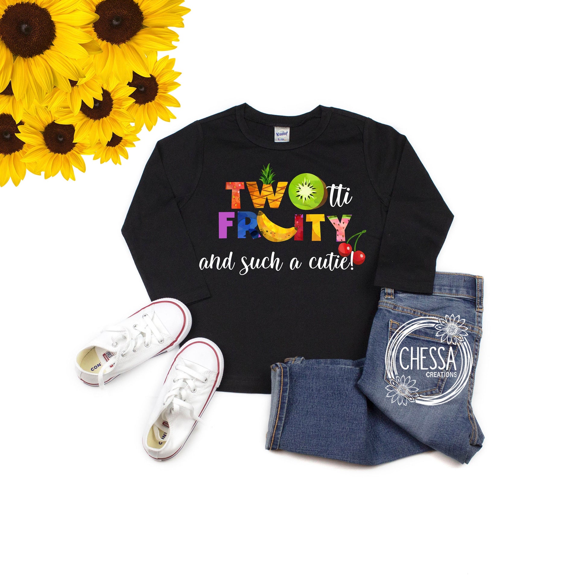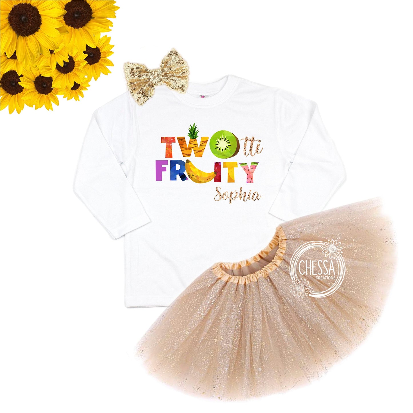 2nd Birthday Outfit Girl Two 2 Year Old Girls Fruit Birthday Outfit, TWOtti Fruity, Short or Long Sleeve Shirt, Tutu Bow, DTG Ink Print