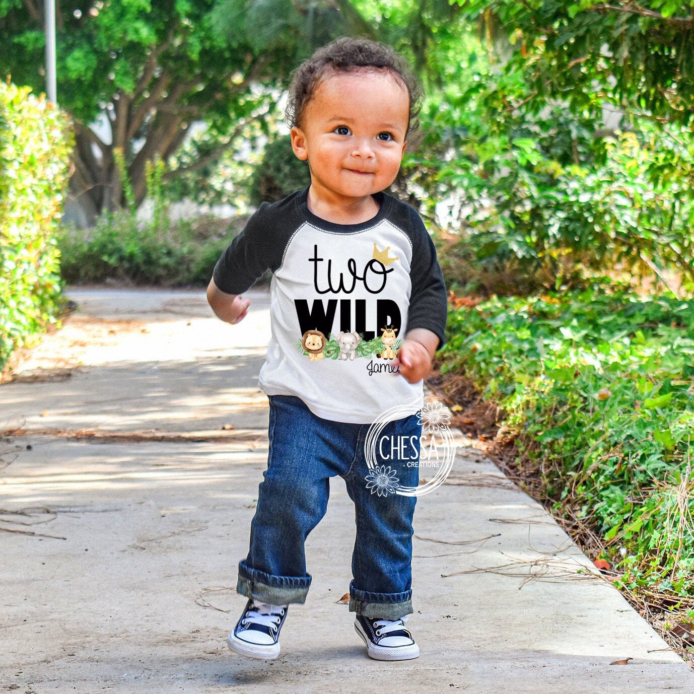 2nd Birthday Shirt Boy Outfit Two Wild 2 Year Old Jungle Safari Animals First Birthday Cake Smash Shirt, DTG Ink Print