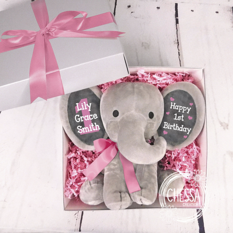 Have you been searching for that perfectly unique baby gift that will make the new mom 'oooo' and 'ahhhh' at the site of it? Or maybe you want a gift that baby won't grow out of in 2 weeks? One that is precious and timely. My daughter is turning 7 this year and still cuddles with her personalized elephant every night. This precious gift can even be used as a photo prop for baby every month to see how they've grown! If you are wanting a newborn gift that is truly all of these things and more, you have found it!