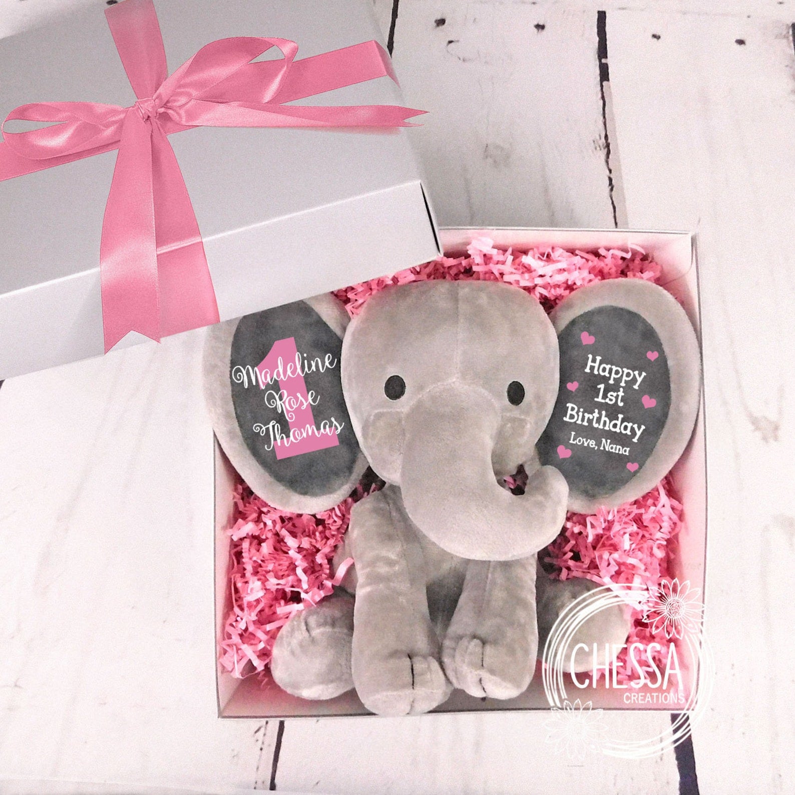 Gift for Baby Girl & New Mom, Pink Gift Box for Baby Shower Gift Basket, Personalized Elephant Stuffed Animal, Unique Gifts, Bubblegum Pink
