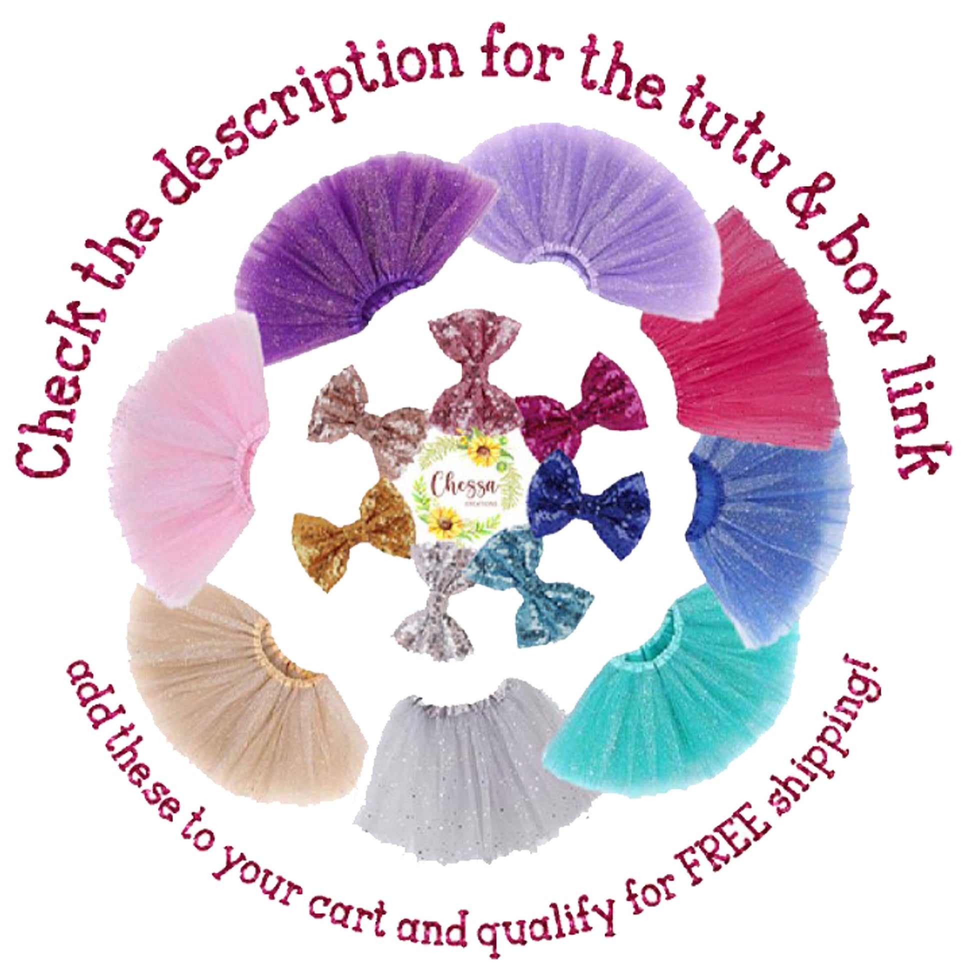 This listing includes the shirt only. ADD THE TUTU OR BOW HERE and qualify for FREE shipping! https://etsy.me/2WMPzmp