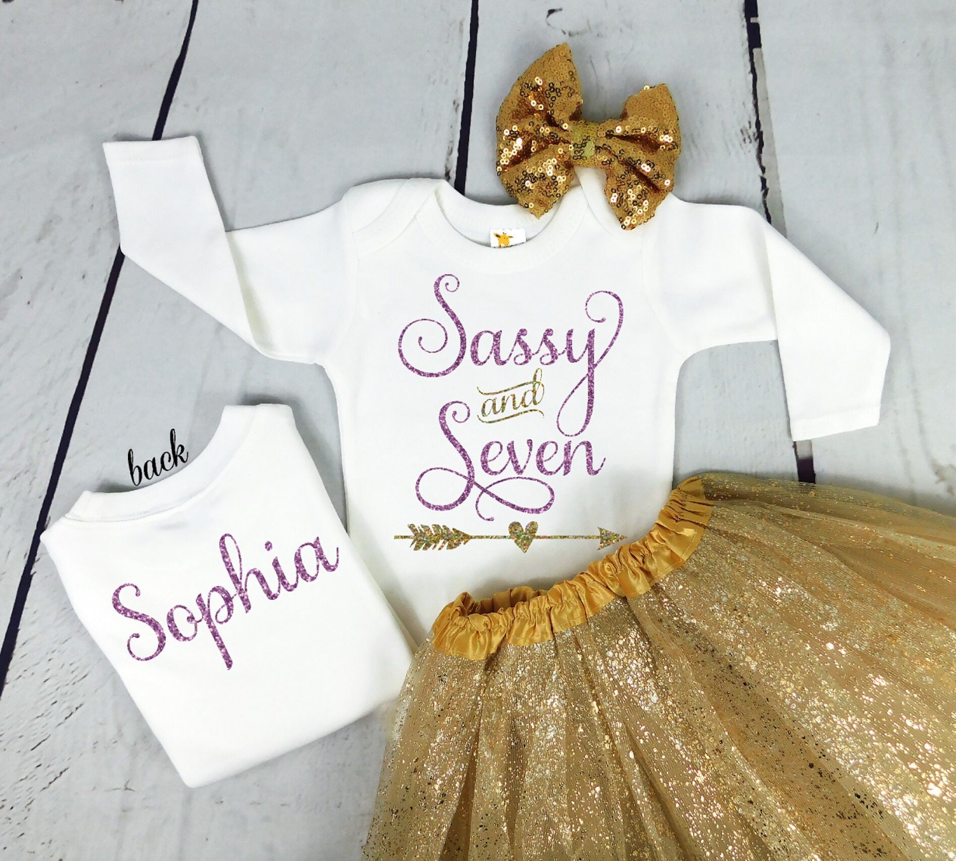 Girls Birthday Shirt 7 Year Old, Birthday Outfit Sassy and Seven Lavender, Gold, ANY AGE!, 6 Year Old. 6th Birthday Party, Chessa Creations